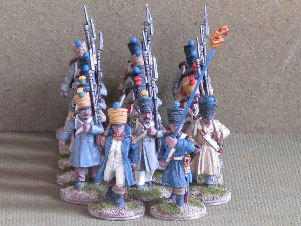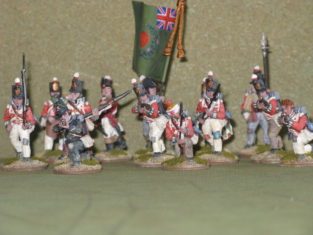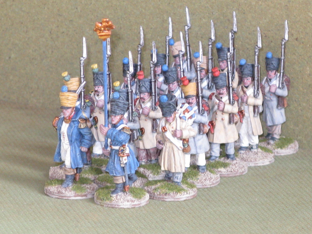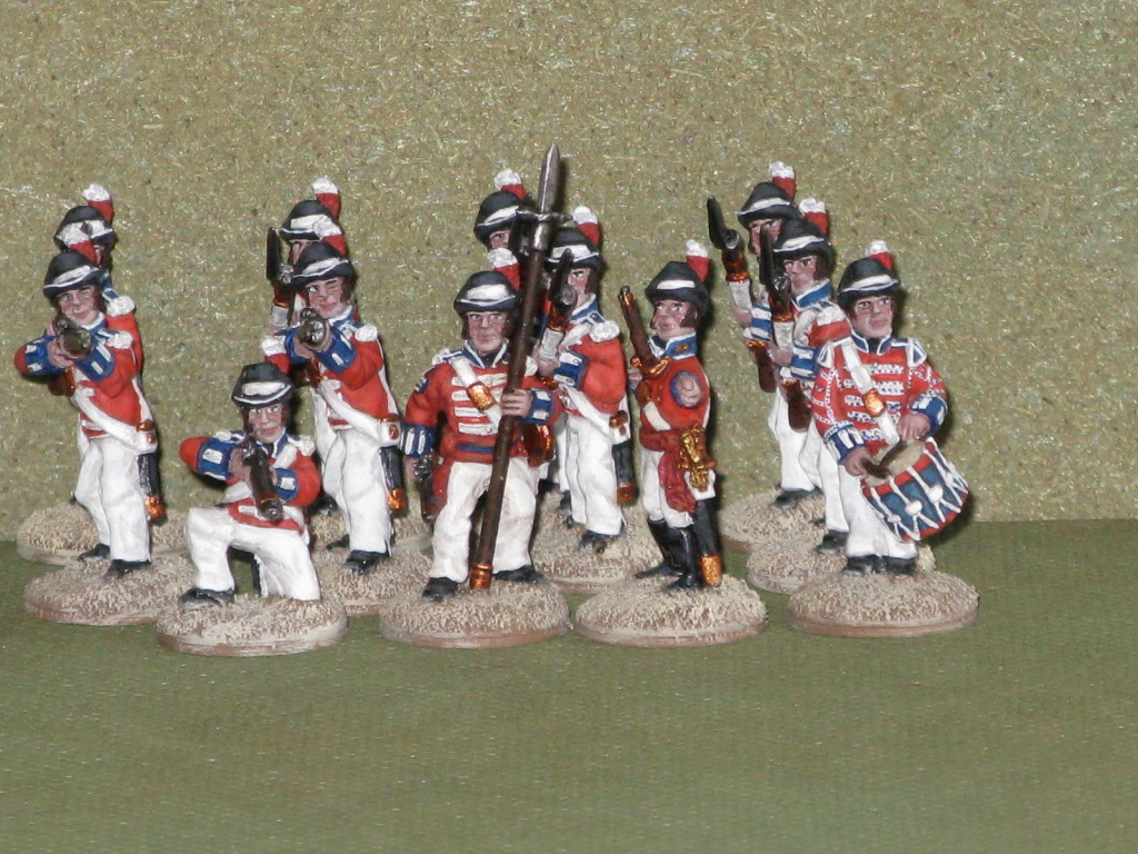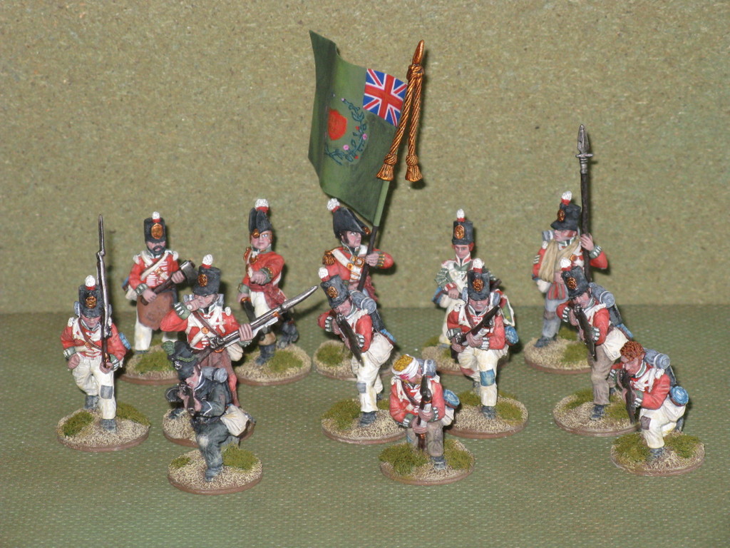 Miniature 28mm. in plastica della Perry Miniatures ad eccezione dell'Ufficiale, del portabandiera e del tamburino che sono pezzi in metallo della Front Rank.