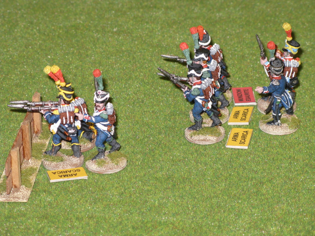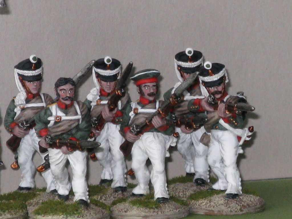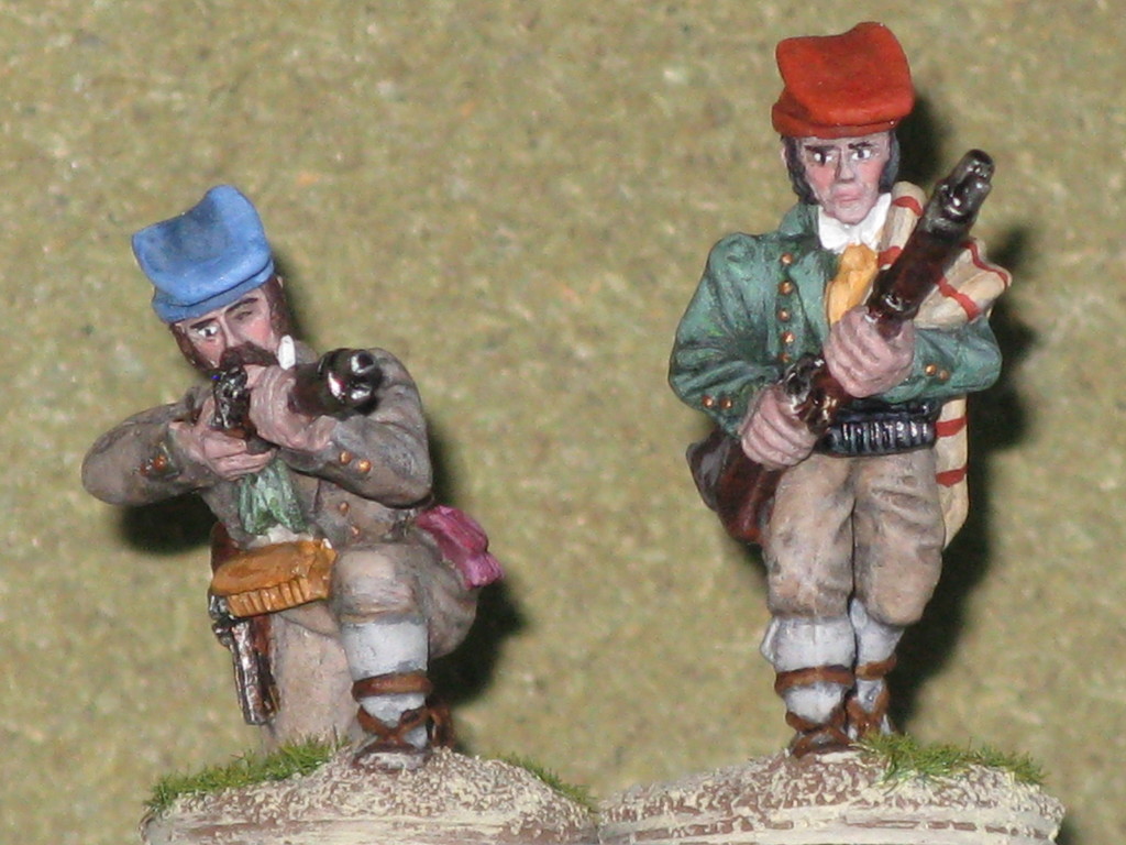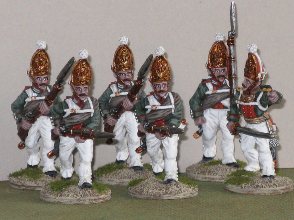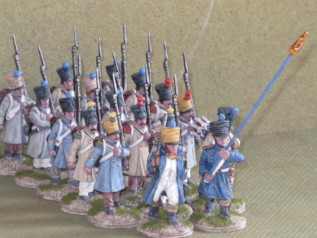 Miniature 28mm. in plastica della Perry Miniatures ad eccezione dell'Ufficiale, del portabandiera e del tamburino che sono pezzi in metallo della Front Rank.