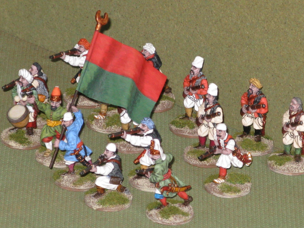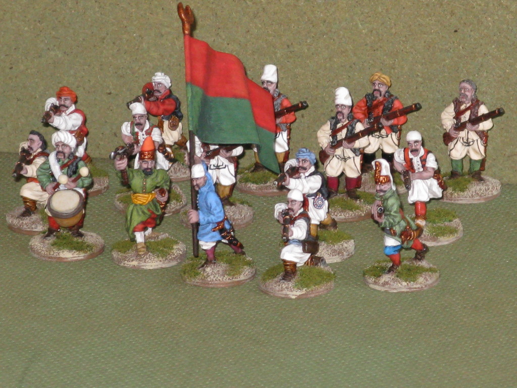 My team is composed of an Officier and a NCO of the Jannisieries, a flagbearer, a drummer and 10 albanian mercenaries.