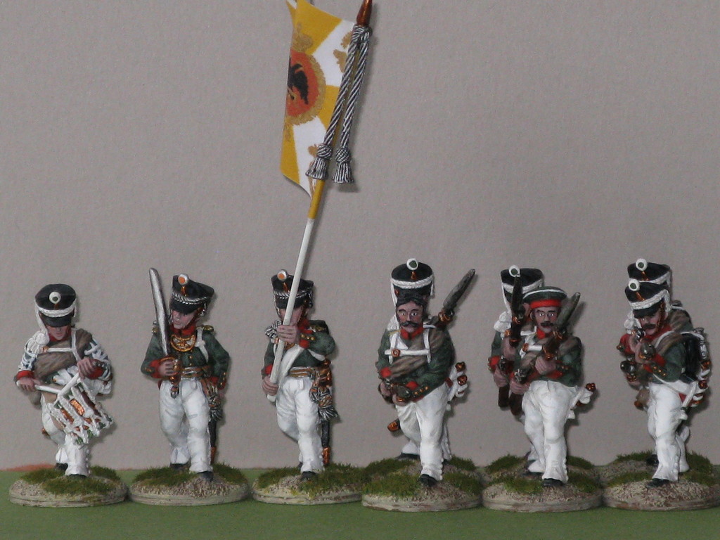 28mm plastic miniatures of Perry Miniatures; Officer, standard bearer and drummer are metal figures of Front rank.