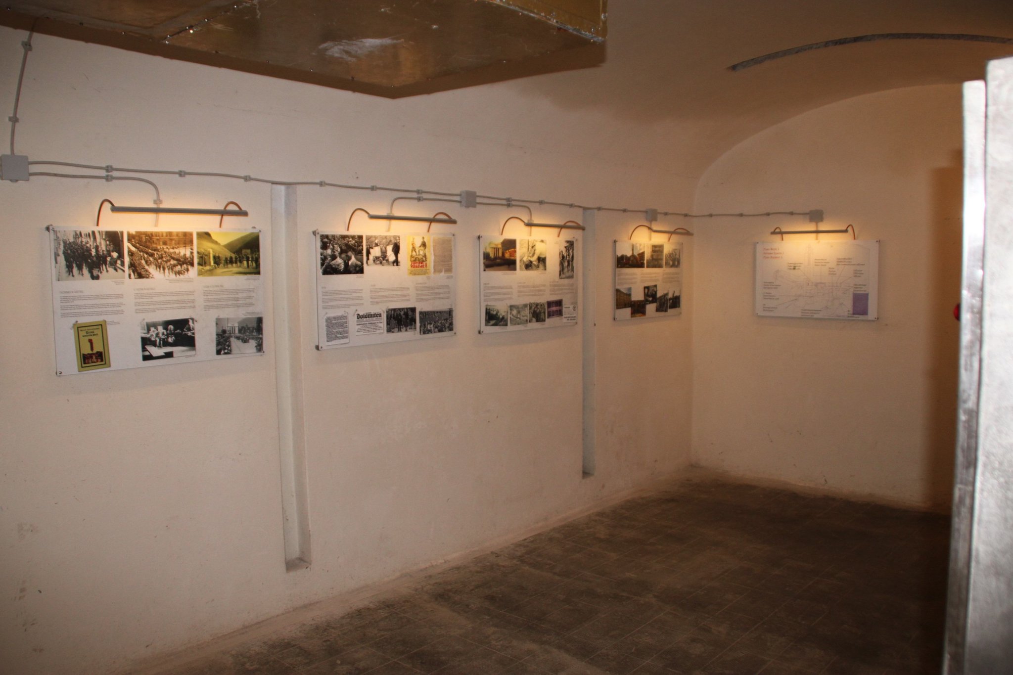 In the dormitories are mounted panels illustrating the history of South Tyrol and of the bunker.