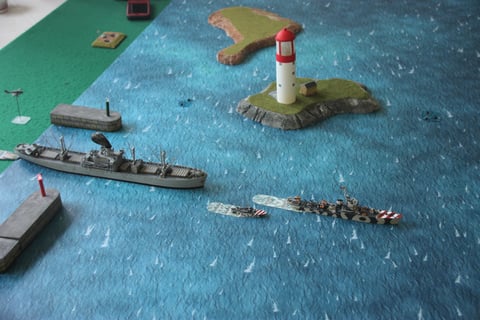 Un convoglio italiano (composto da un grosso mercantile armato e una motocisterna costiera) al quale si è aggregata una motozattera armata tedesca, scortato da una corvetta classe Gabbiano e da un M.A.S., parte da un porto della Dalmazia per raggiungere l'Italia. Gli inglesi hanno teso un agguato con le loro motosiluranti nelle vicinanze del porto di partenza.