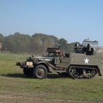 Erano presenti una trentina di veicoli tra cui 1 Sherman (76mm), 1 semi-cingolato M16 AA, 1 scout car USA, 3 camion GMC, 3 Dodge camion leggeri, svariate jeep willis, 2 auto staff USA, varie moto-sidecar tedesche ed italiane, 1 trattore d'artiglieria italiano desertico Fiat/Spa TL 37.