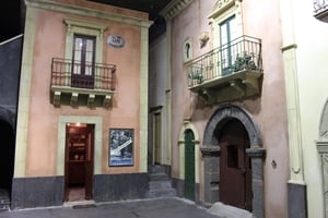 All'inizio del percorso museale, ci si trova in una piazzetta di un tipico paesino siciliano, riprodotta come poteva essere nel 1940. Naturalmente gli edifici sono riproduzioni moderne, ma tutti gli arredi, targhe ed altri materiali sono oggetti d'epoca.