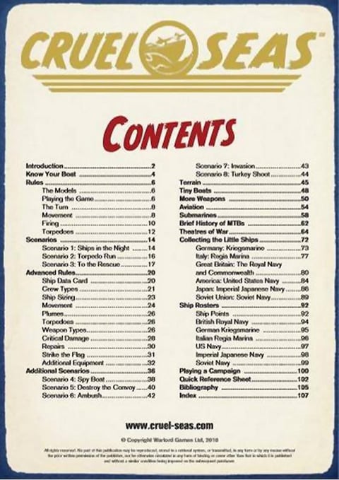 Per il regolamento sono già uscite due errata-corrige, che è bene scaricare dal sito della warlord (http://www.warlordgames.com/cruel-seas-january-errata/) e aggiornare il proprio manuale di gioco se fosse delle prime serie uscite.