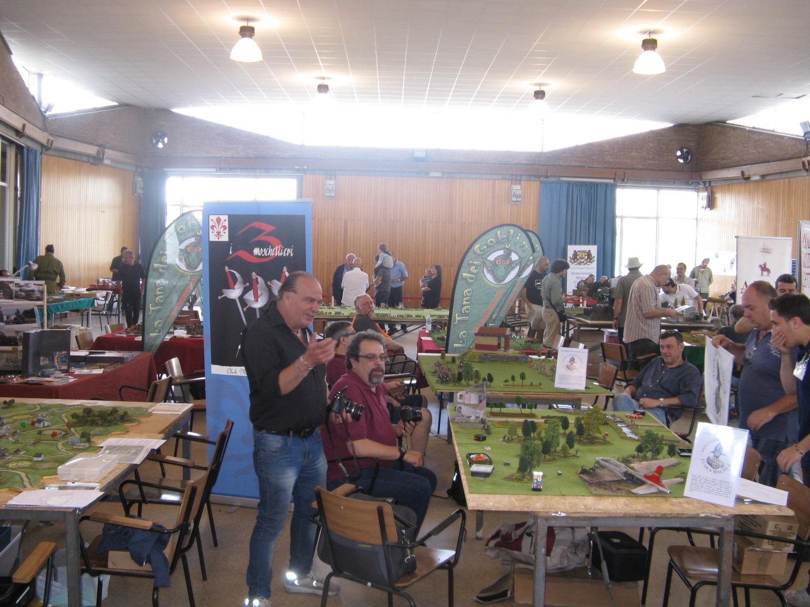 Questa prima edizione sembra ben riuscita fin da subito, 12 venditori del settore presenti, 26 scenari di wargame presentati nei due giorni da vari club del Centro-Nord, un torneo di WH40000 al sabato ed uno di Flames of War alla domenica, uno scenario non giocabile di 7 x 7 mt sulla battaglia di Lutzen realizzato a cura del prof. Ugo Barlozzetti, un’area dedicata al bring and buy, un’esposizone di modellismo statico con vari modelli terrestri, aerei e navali, un’area dedicata al fermodellismo con due plastici ferroviari.