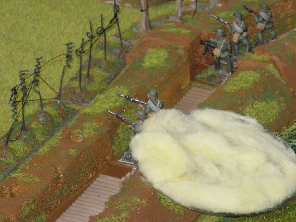 Mentre dense coltri di fumo, misto a nebbia, coprono le linee italiane, i comandi del Regio esercito si chiedono il perché di una tale azione improvvisa e poco giustificata. Le vedette italiane non scorgono, tra la nebbia e il fumo dei proiettili fumogeni, un’altra cortina di vapore biancastro che scende lentamente dalle linee nemiche, sospinta dalla leggera brezza dell’alba. Moriranno sul posto.