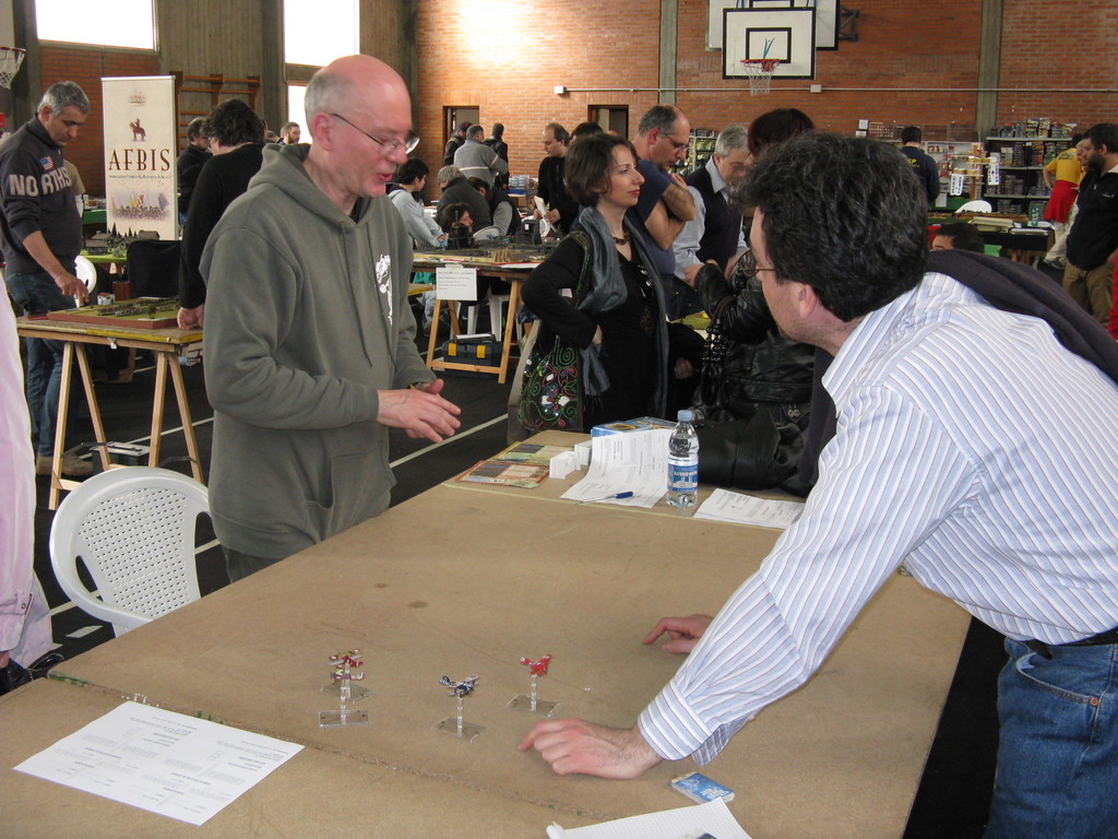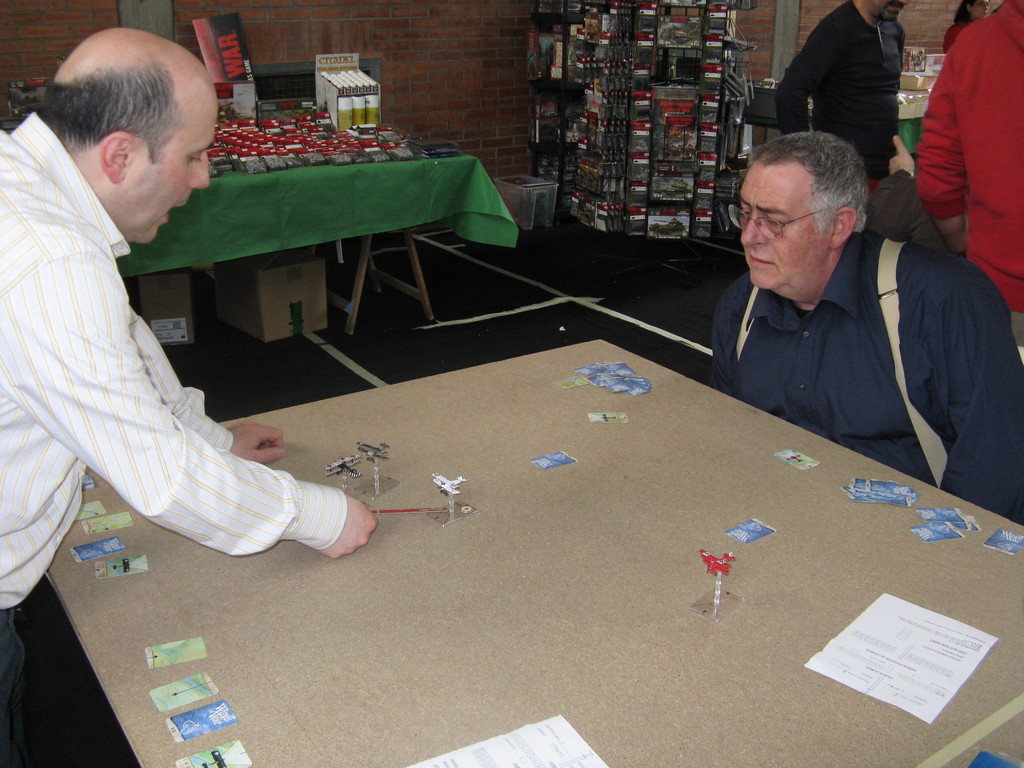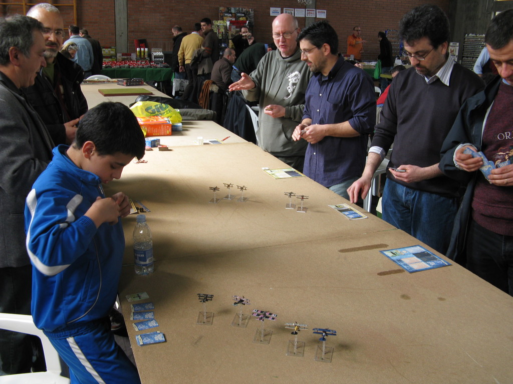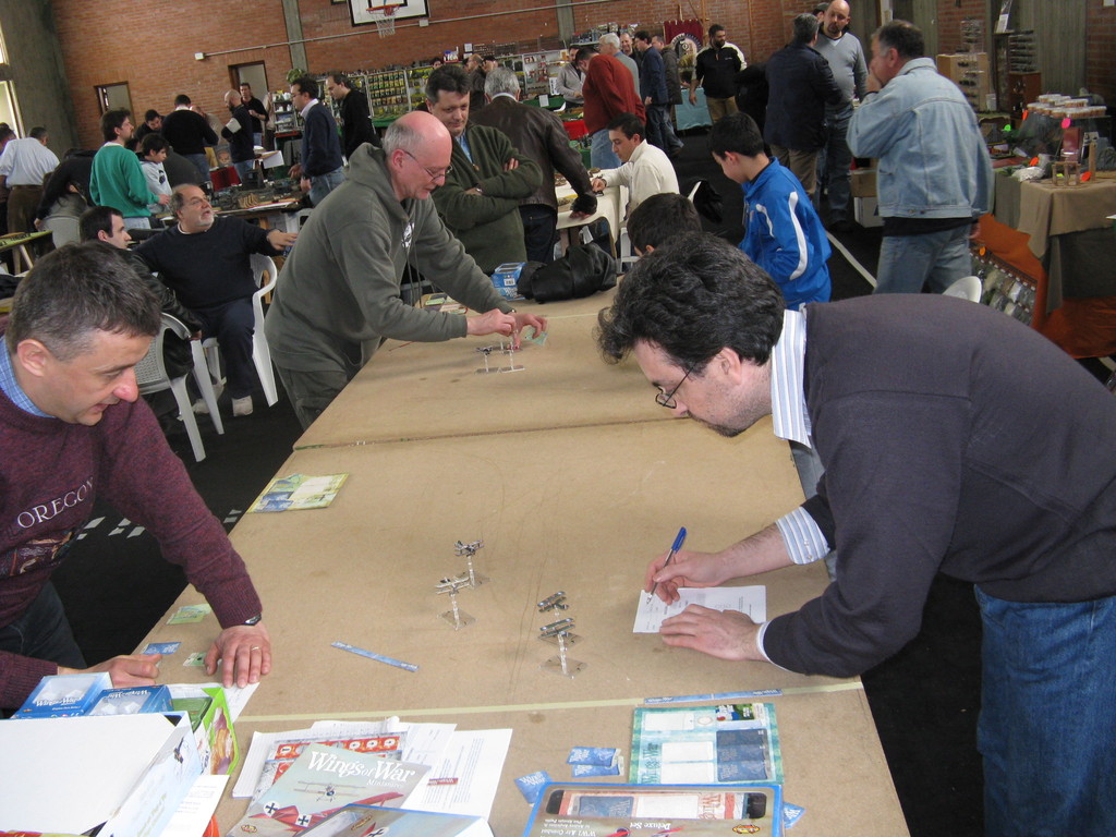 Il torneo di Wings of Wars ha visto impegnati 10 giocatori, che si sono affrontati al mattino, suddivisi in due squadre di cinque giocatori ciascuna (Intesa e Imperi centrali), in una partita amichevole che aveva lo scopo di creare una classifica iniziale per le tre partite del torneo vero e proprio.