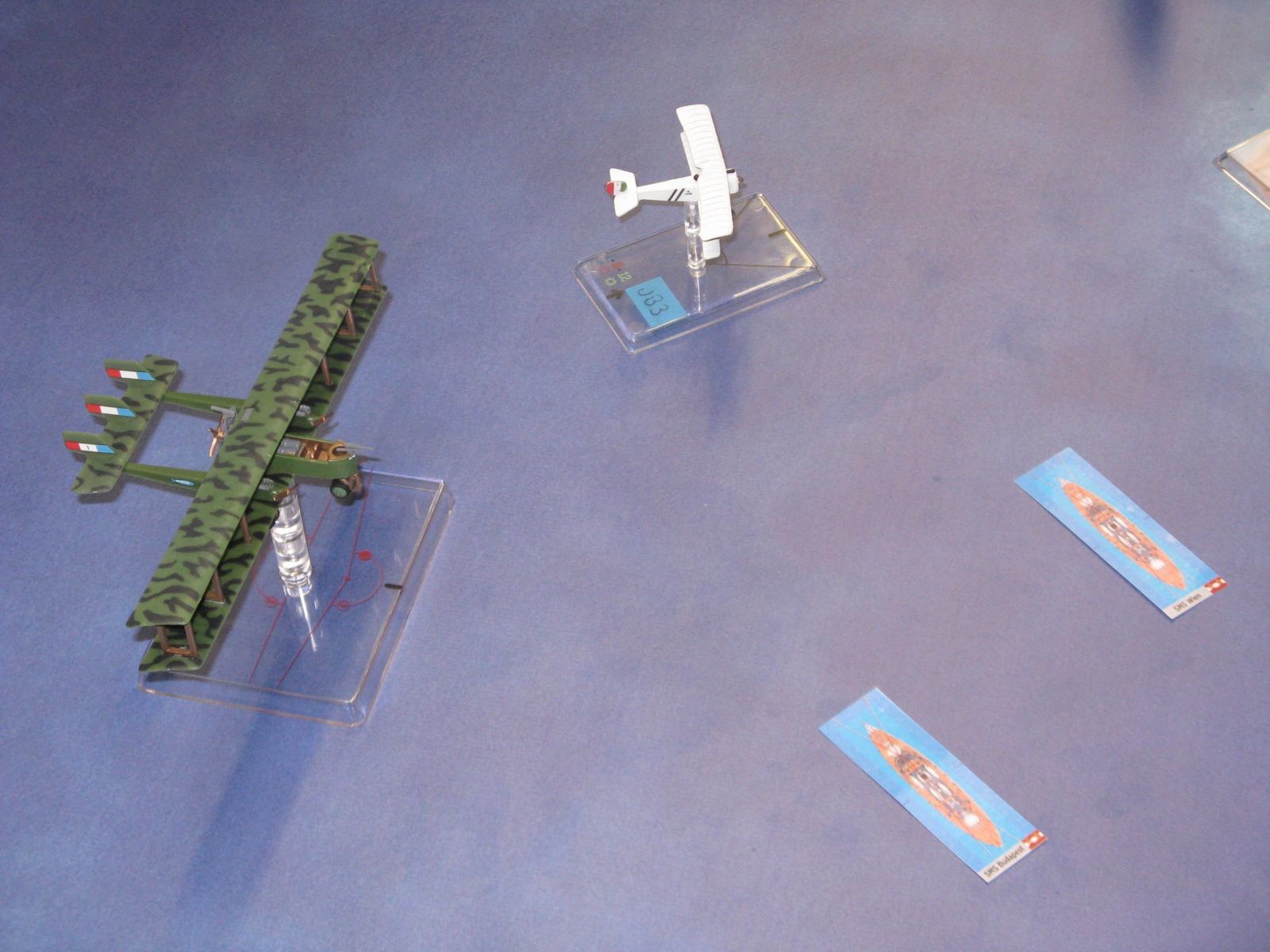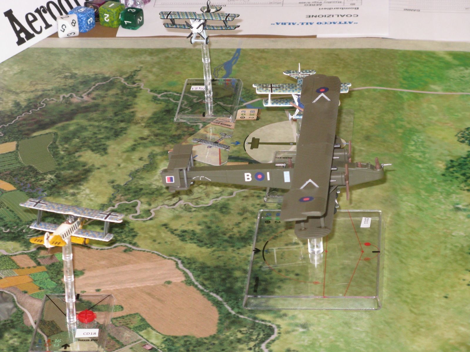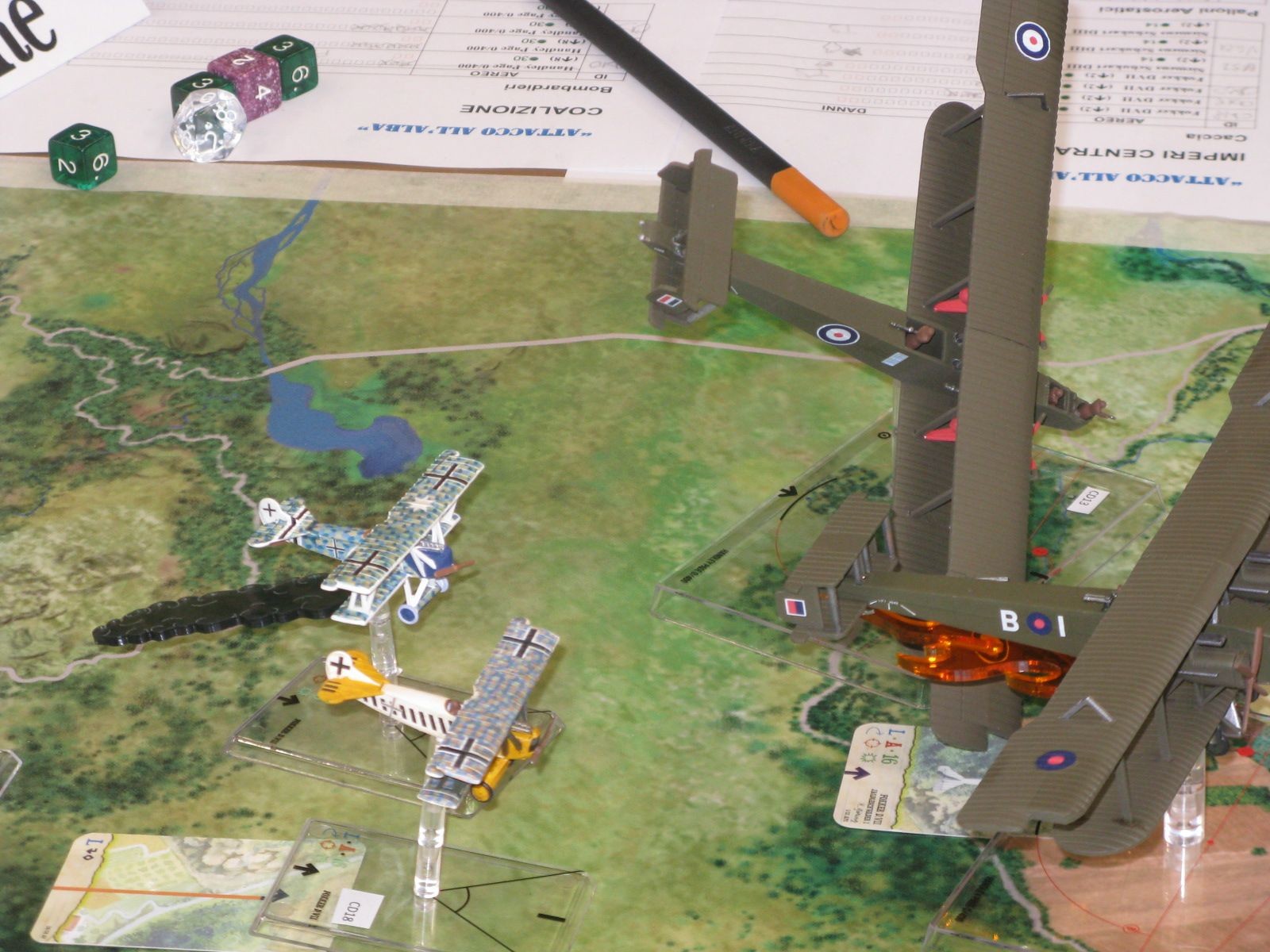 Presente anche Andrea Angiolino, autore del gioco, che nel corso delle due giornate ha partecipato, per quanto gli è stato possibile, agli scenari non trascurando di spiegare il sistema di gioco ai neofiti. Con l’occasione ha presentato anche le prime prove di stampa dei nuovi modelli di Nieuport Bebè.