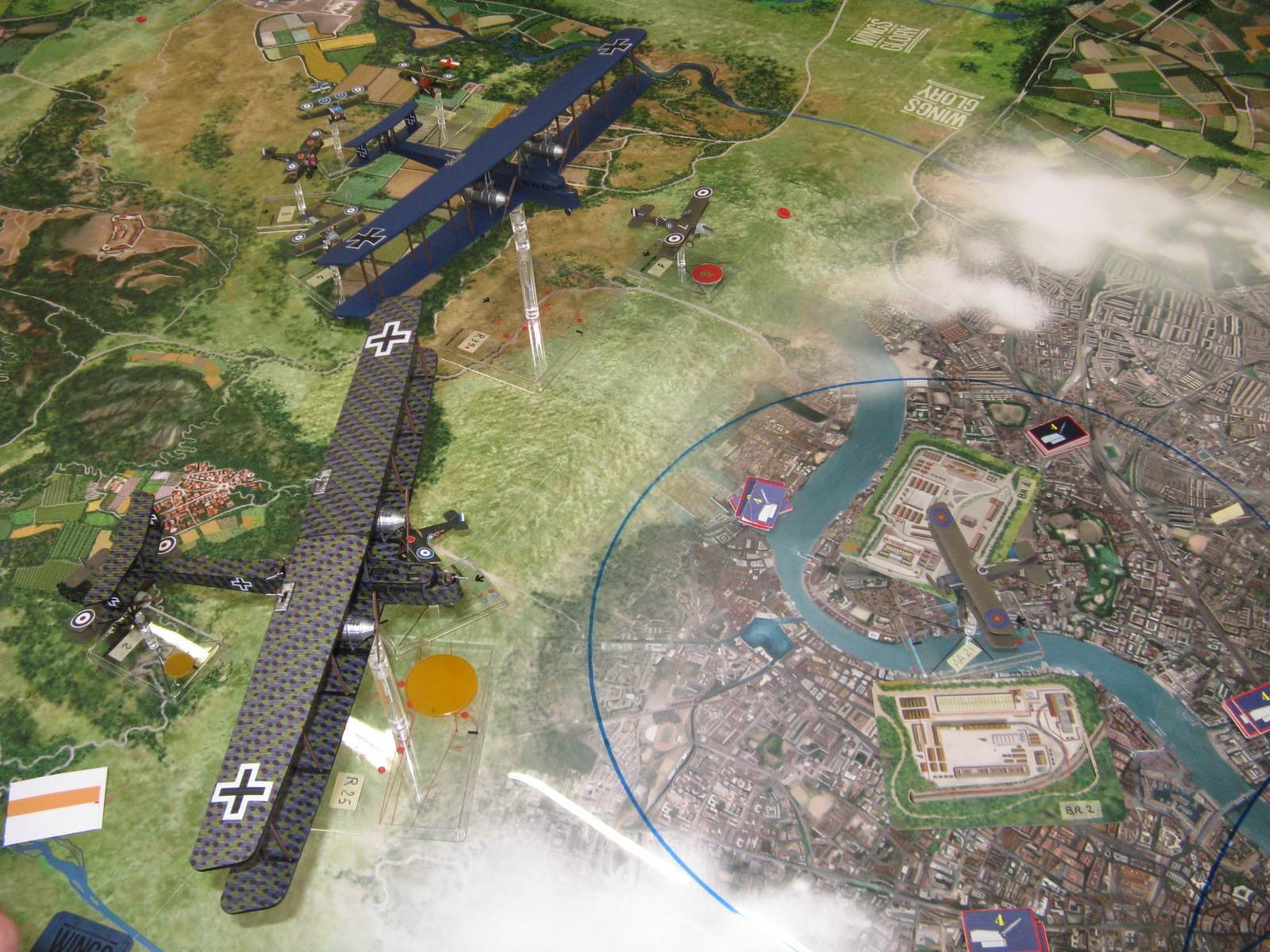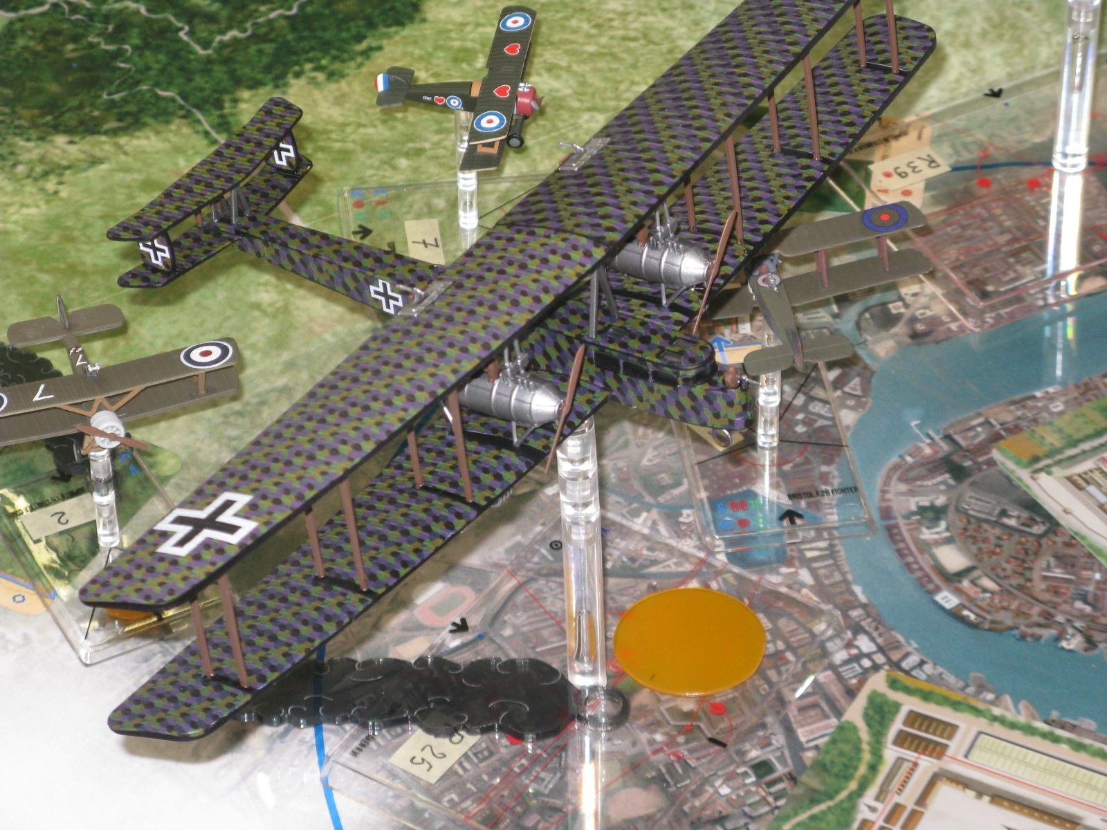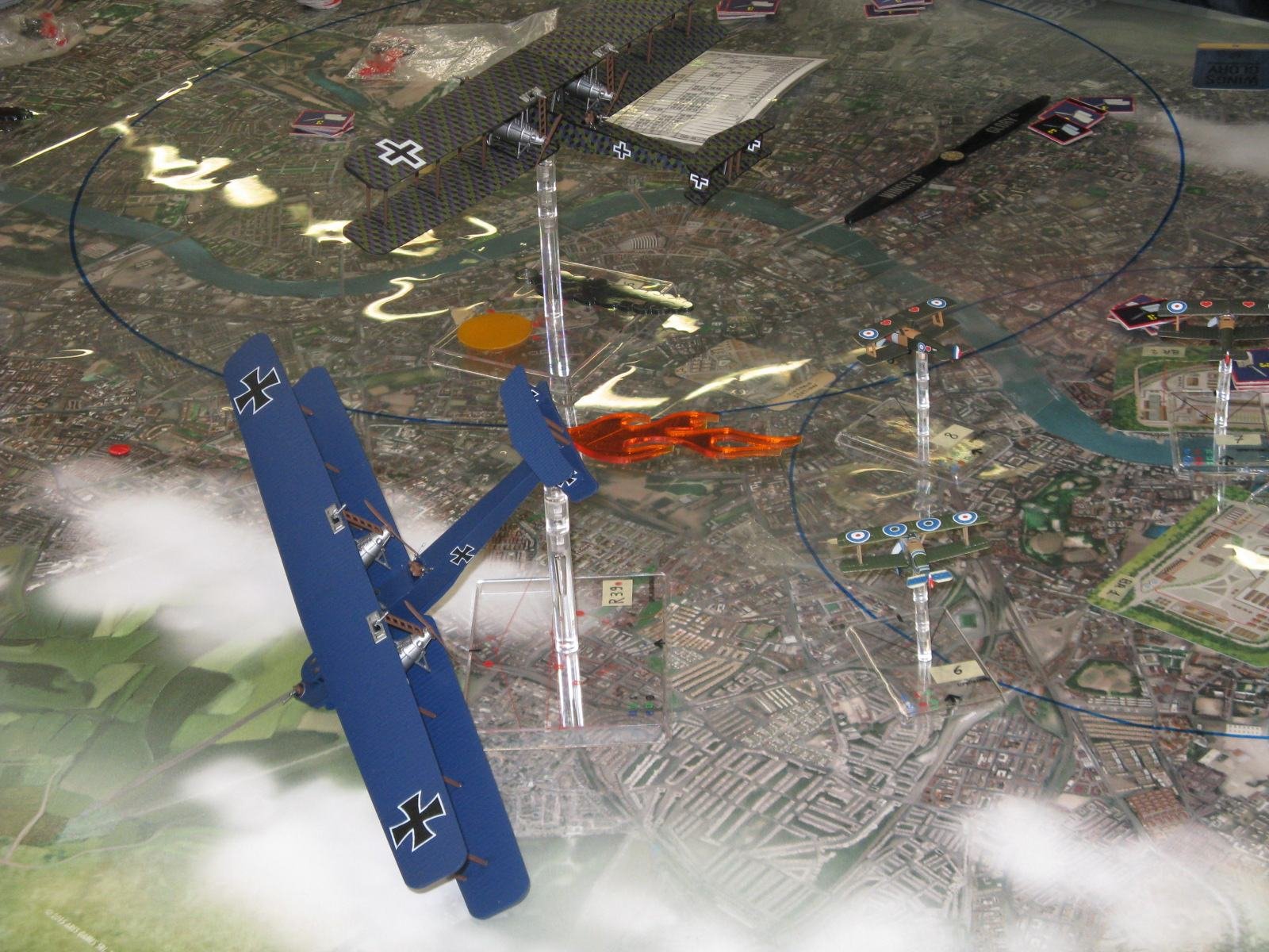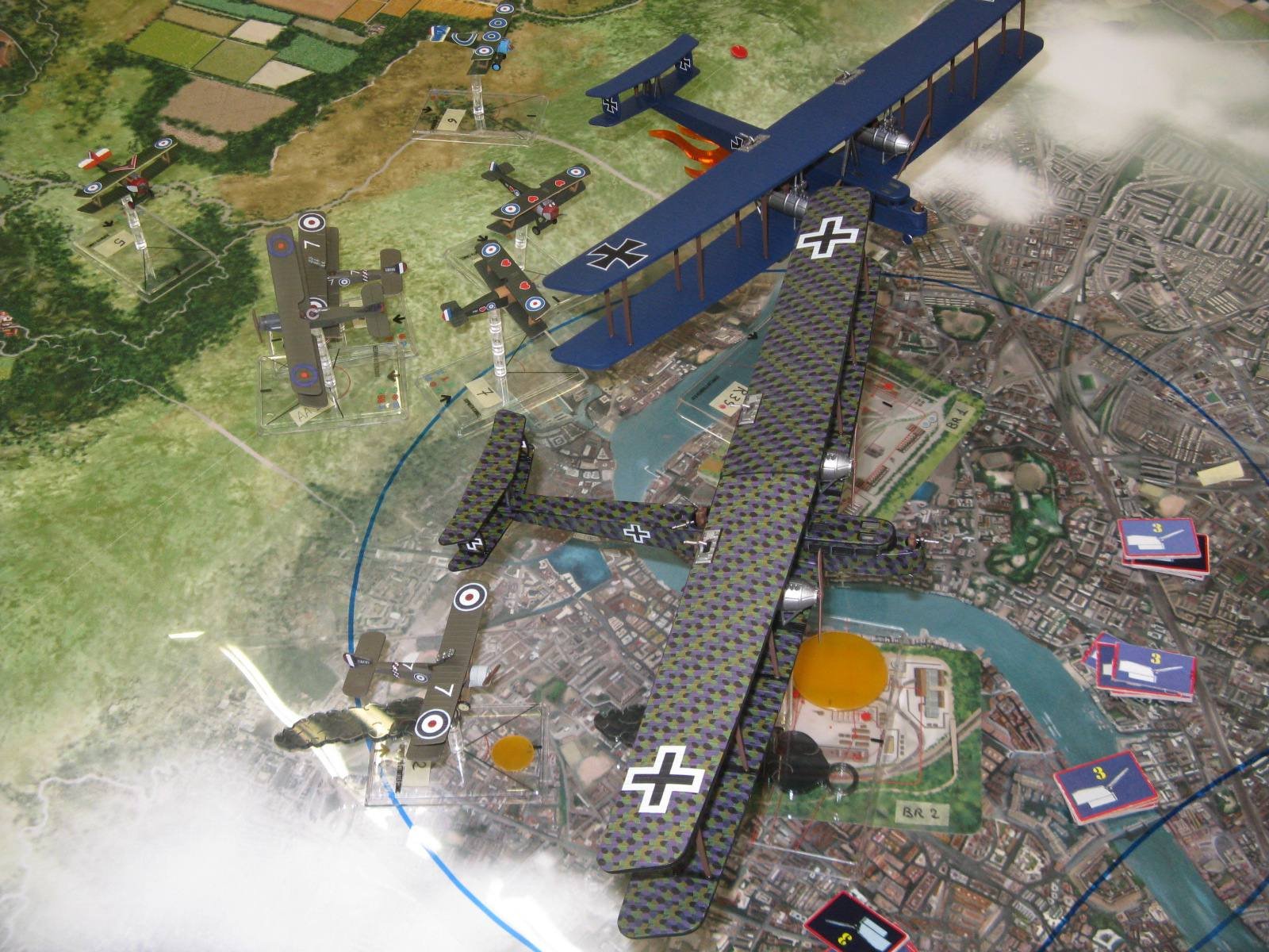 Entrambi i bombardieri tedeschi riescono a raggiungere Londra e a sganciare i propri carichi di bombe distruggendo completamente i Docks e il Royal Arsenal. Lo Staaken R-39 ripetutamente colpito e incendiato precipita sulla città, mentre i britannici registrano la perdita di tre caccia.