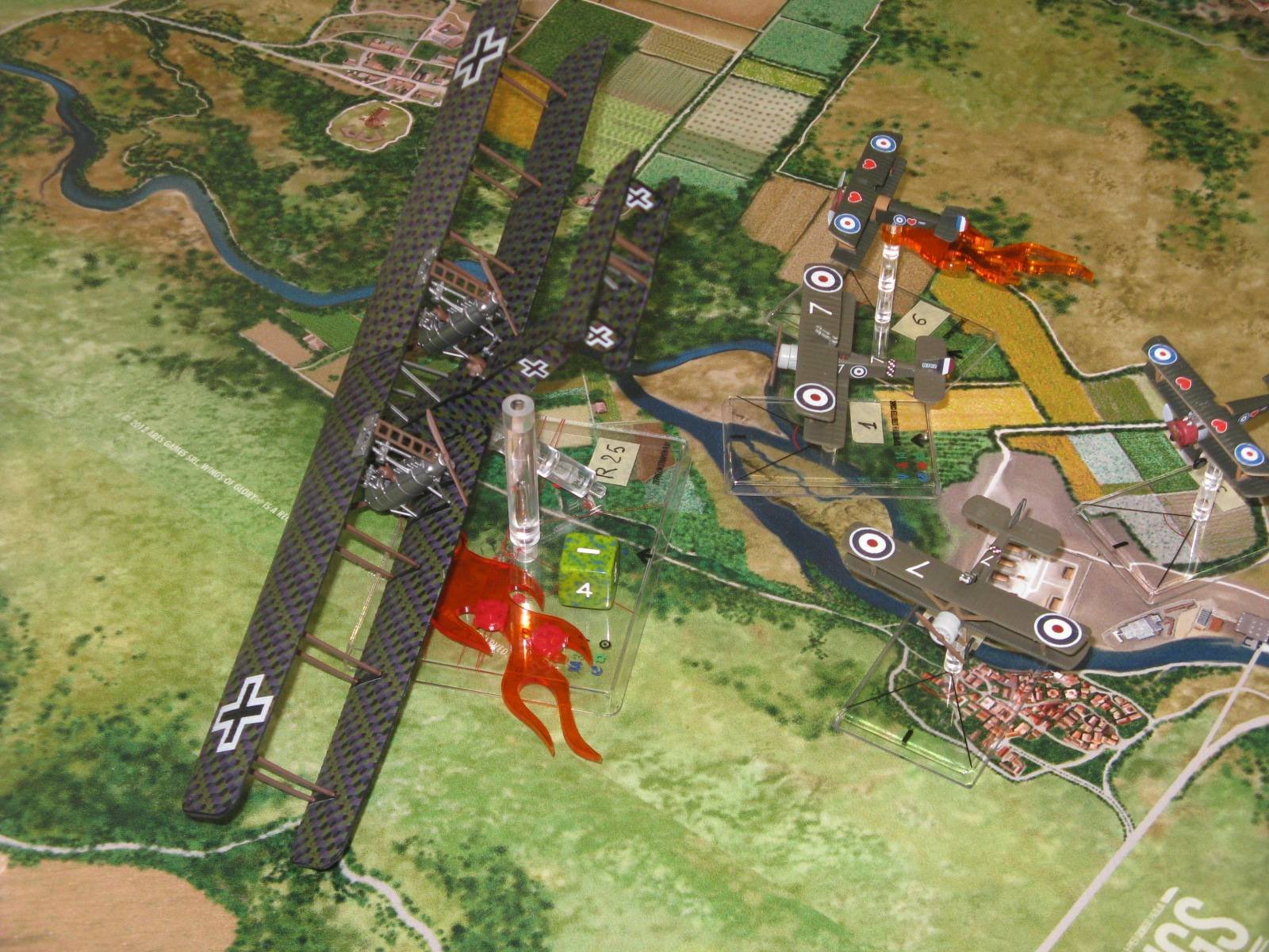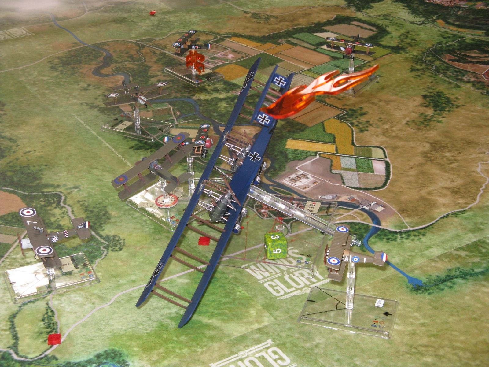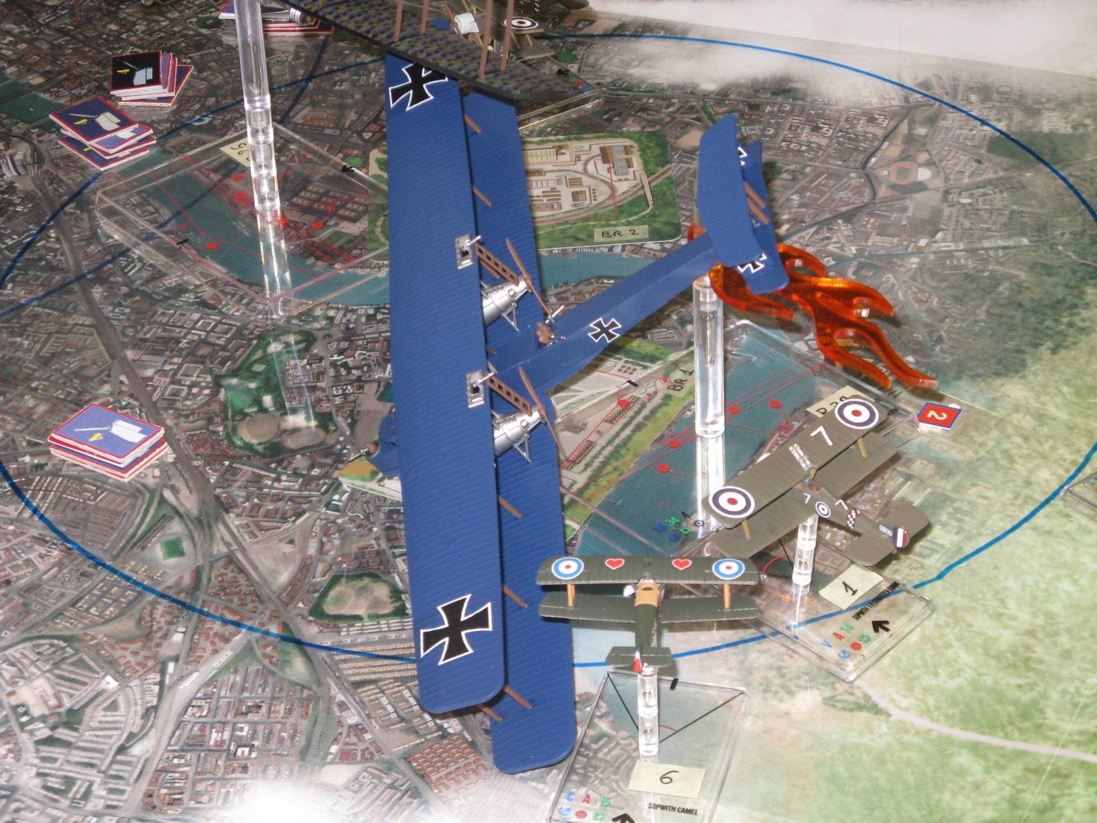 Notevole la prestazione di un Sopwith Camel che sebbene ripetutamente colpito e incendiato, riusciva comunque a rimanere in volo fino al termine dello scenario. Nessun caccia inglese era perduto durante il combattimento aereo.